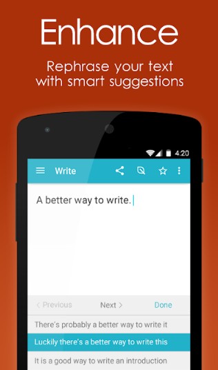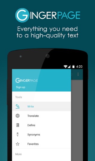 التطبيق يختص في تحرير ومراجعة النصوص الإنجليزية. فيوفر أداة ترجمة لما يزيد عن 50 لغة، كما يراجع النصوص نحويا ولغويا ليقدم لك أفضل صياغة للعبارات التي تريد كتابتها بالإنجليزي.