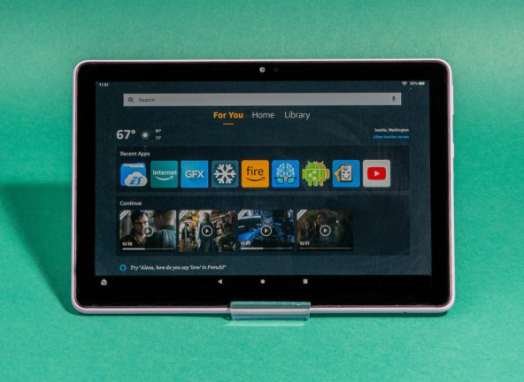 من أجهزة أندرويد اللوحية الغير مكلفة من أمازون فهو يمثل قيمة ممتازة بالنسبة للسعر، ويعتبر الجهاز الأفضل لتشغيل الفيديو ومكالمات زووم. السعر 89.99 دولار.