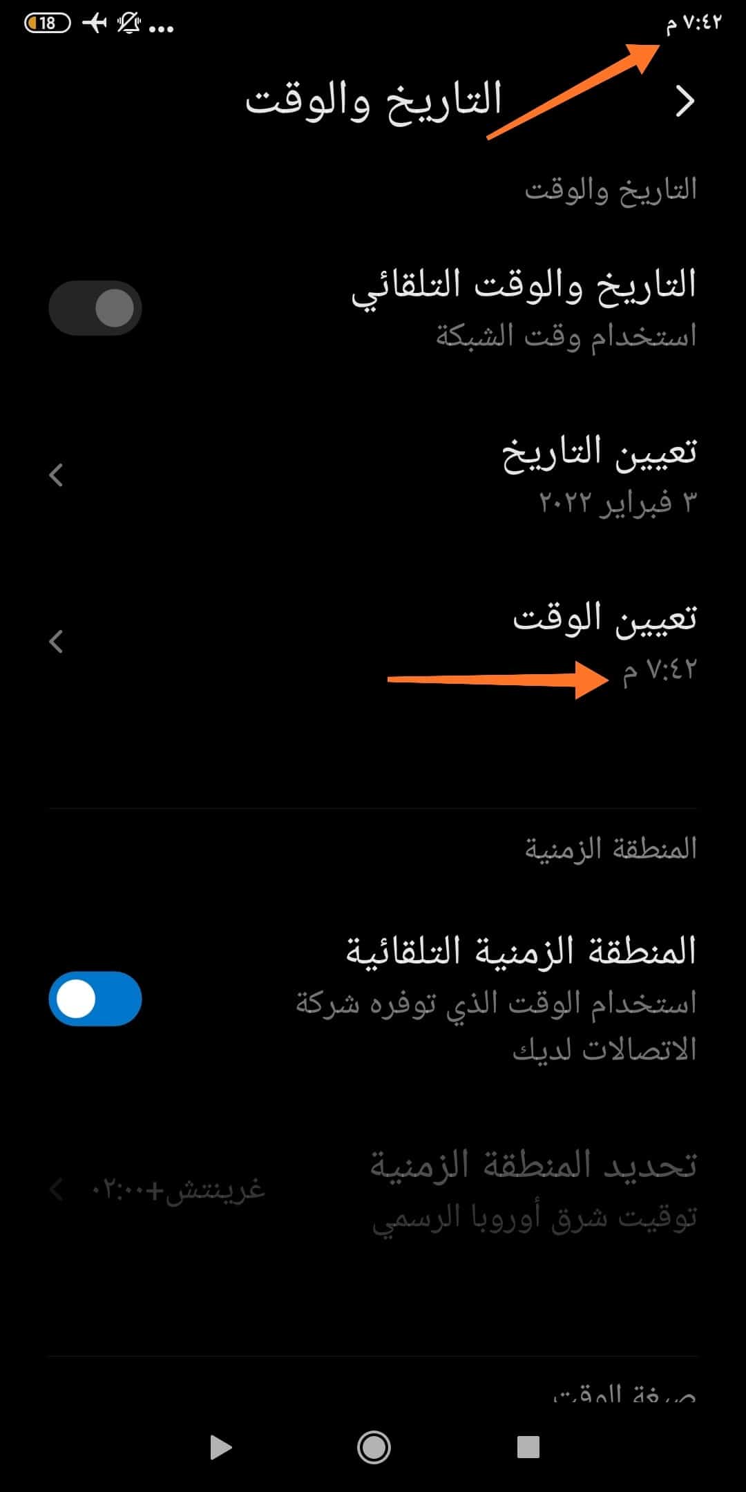 • بعدما قمت بتحديد تطبيق الواتساب لإختيار التوقف الاجباري “Force Stop” عد إلى صفحة الإعدادات الرئيسية مرة أخرى، للتوجه لقائمة الوقت وتاريخ الجوال لإيقاف “الوقت والتاريخ التلقائي” من القائمة المخصصة داخل الإعدادات، وذلك لغرض خداع whatsapp من معرفة الوقت الفعلي الحالى.