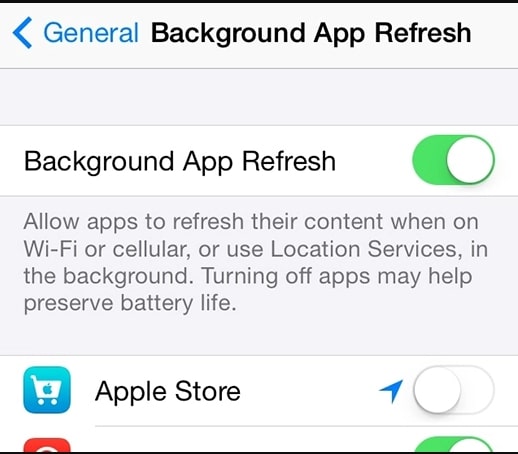 ولأجل تغيير ذلك على نظام iOS ، انتقل إلى settings > عام> تحديث البرامج في الخلفية لمراجعة البرامج التي تحتاجها بالفعل إلى التحديث باستمرار أو إيقاقها.