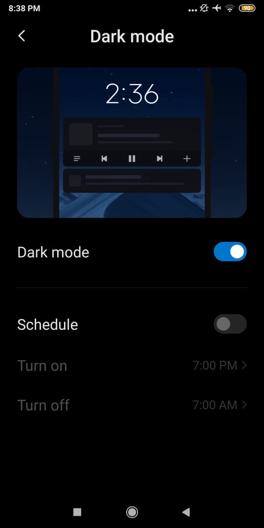 واخيرا إن كان لديك شاشة OLED، أو إذا كان لديك هاتف أحدث مثل Samsung Galaxy S9 أو iPhone XS، فيمكنك تقليل استنزاف البطارية عن طريق التبديل إلى الوضع الداكن.