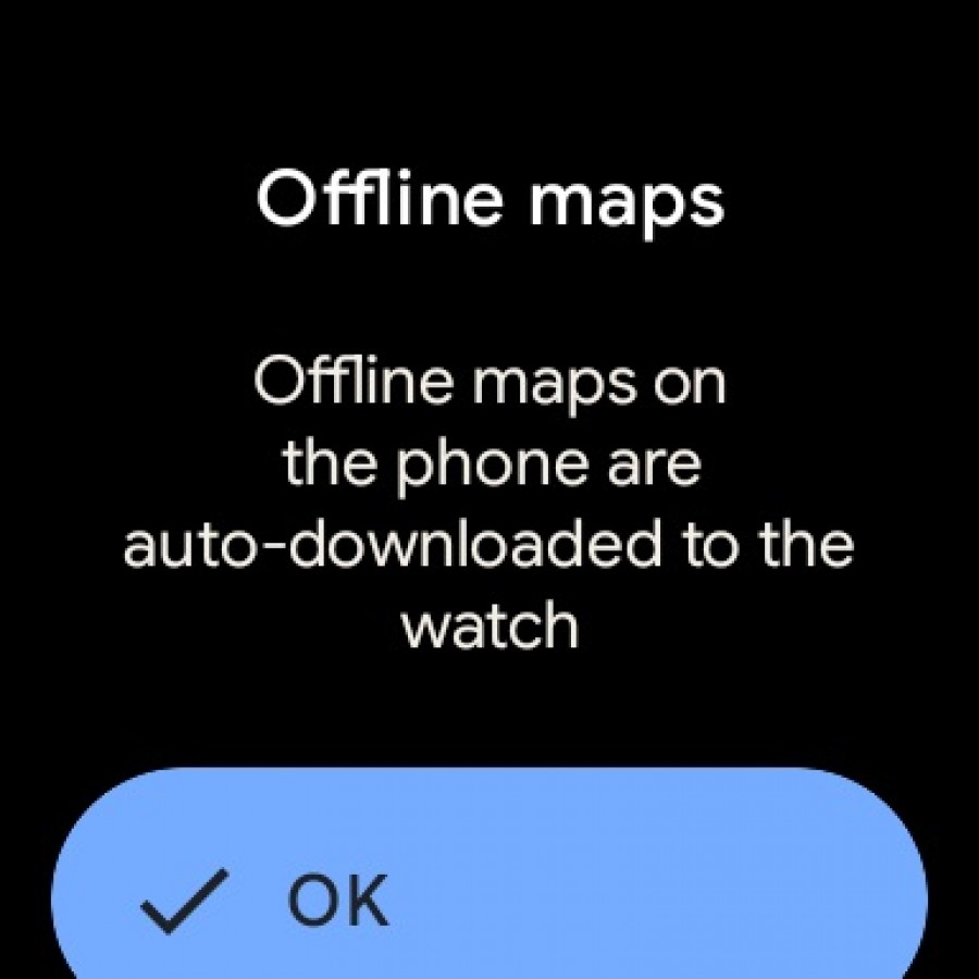 ومن الجدير بالذكر أن الساعة الذكية تقوم بمزامنة الخرائط دون اتصال عندما تكون متصلة بشبكة Wi-Fi وقيد الشحن، وتظهر رمز سحابة مشطوب بجانب الوقت على الخريطة للإشارة إلى عدم وجود اتصال بالإنترنت.