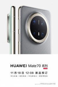 أعلنت شركة هواوي عن فتح باب الحجز المسبق لسلسلة هواتفها الجديدة، هواوي ميت 70 – Mate 70- والتي من المقرر الكشف عنها رسميًا في 26 من شهر نوفمبر الجاري، وتشمل السلسلة ثلاث طرازات، ويُتوقع أن تحدث نقلة أخرى نحو استعادة مكانة الشركة الصينية التي عانت من العقوبات الأميركية في السنوات الأخيرة.