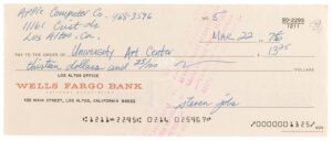 تمت هذه الصفقة كجزء من حدث مزاد كبير تحت عنوان “ستيف جوبز وثورة أبل”، حيث تم بيع عدة مقتنيات نادرة تتعلق بتاريخ الشركة، ففي المزاد ذاته، بُيع شيك من جهاز كمبيوتر أبل لعام 1976 موقع من ستيف جوبز بمبلغ 112,054 دولار، كما بُيع هاتف آيفون لأول جيل بسعة 4 جيجابايت مختوم بمبلغ 87,514 دولار، إلى جانب شيك آخر بقيمة 62,500 دولار وجهاز أبل ليزا بمبلغ 56,818 دولار.