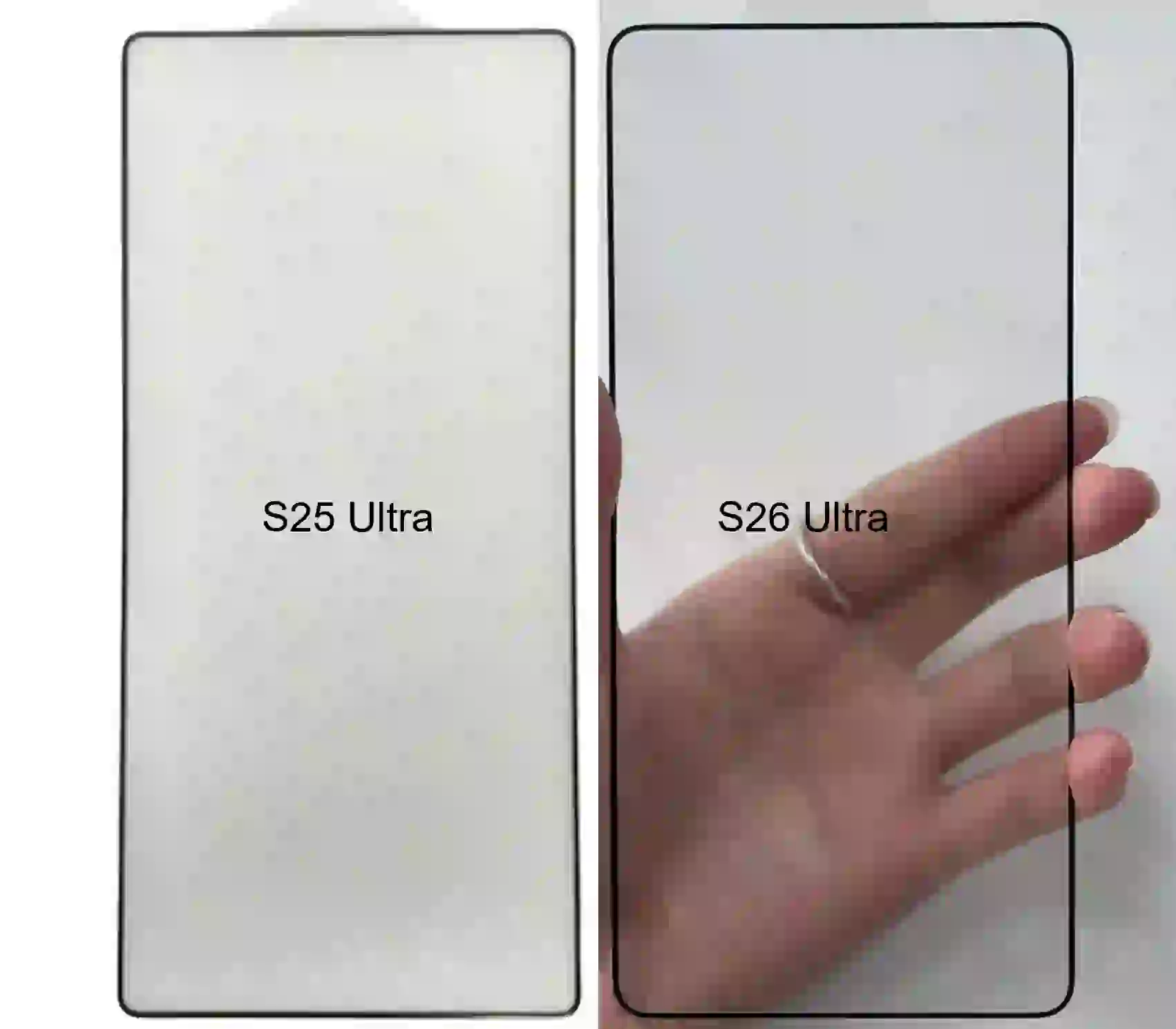 من النظرة الأولى، تبدو زوايا S26 Ultra مشابهة إلى حد كبير لزوايا Galaxy S21 Ultra القديم، لكن مع اختلاف أساسي، إذ كان الهاتف الصادر عام 2021 يمتلك شاشة منحنية الأطراف، بينما يُتوقع أن يأتي S26 Ultra بشاشة مسطحة تماما.